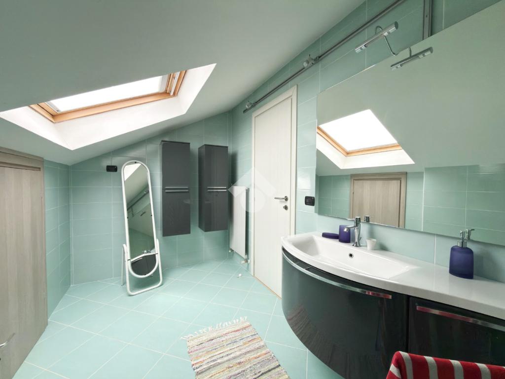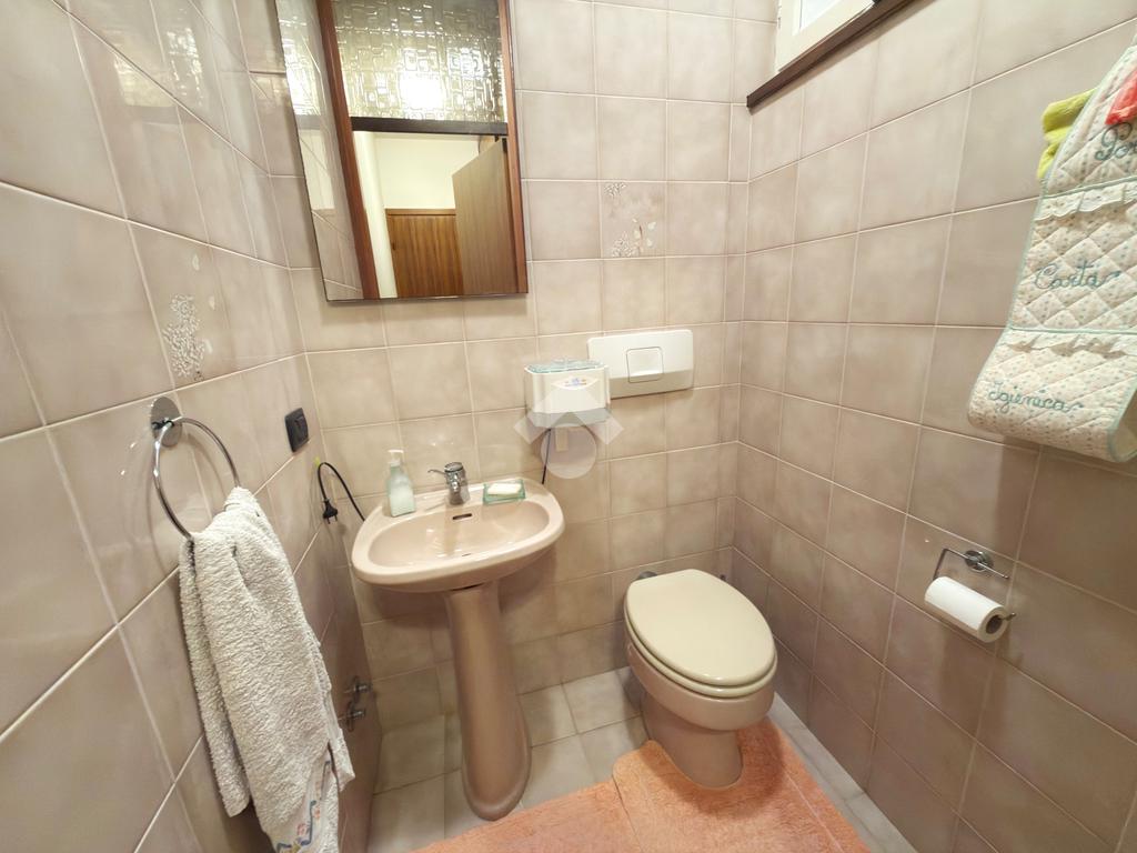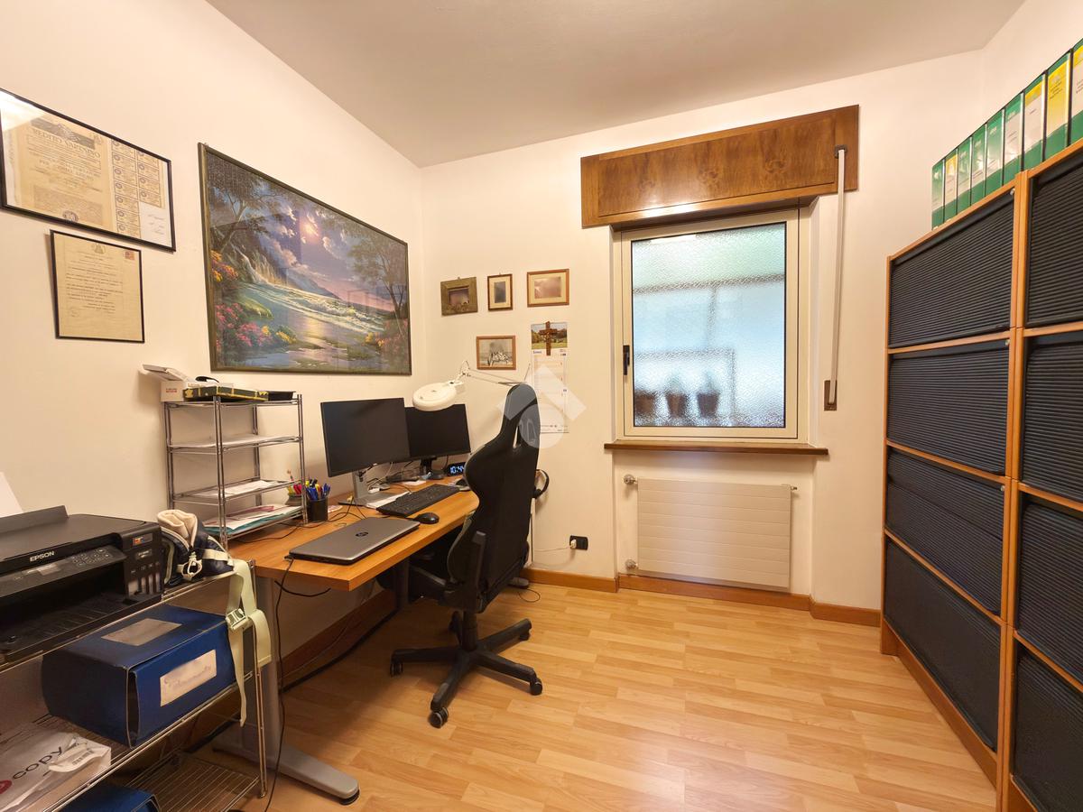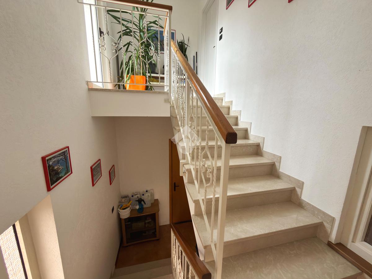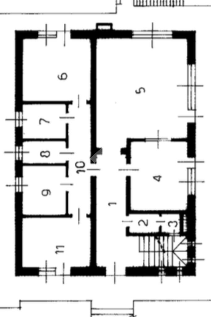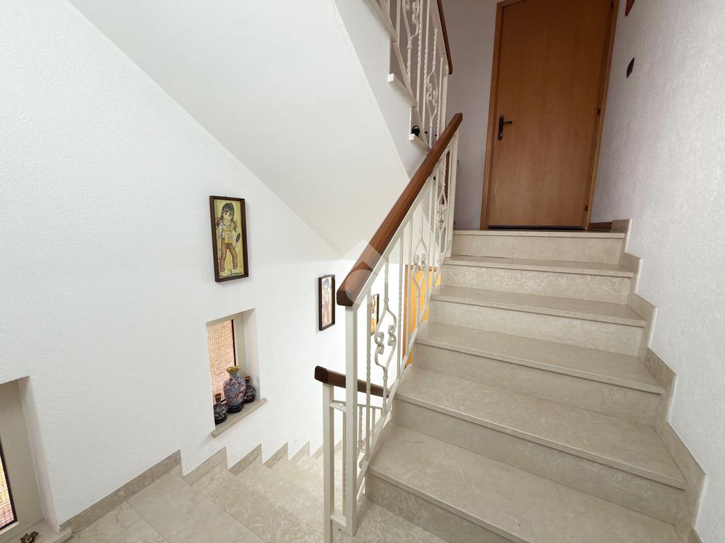 Salendo al primo piano scopriamo la prima parte abitativa dell'immobile comprendete un bagno di servizio, una cucina abitabile, un ampio soggiorno luminoso con camino a pellet, due camere matrimoniali, un ampio bagno con doccia e infine a completare il piano è presente anche una stanza utilizzata come studio.