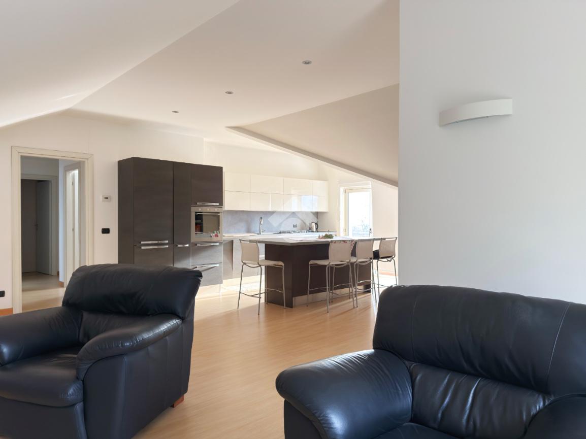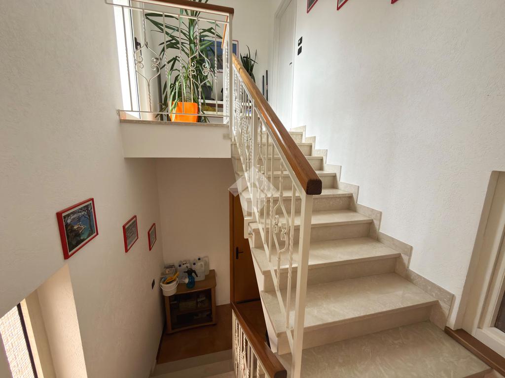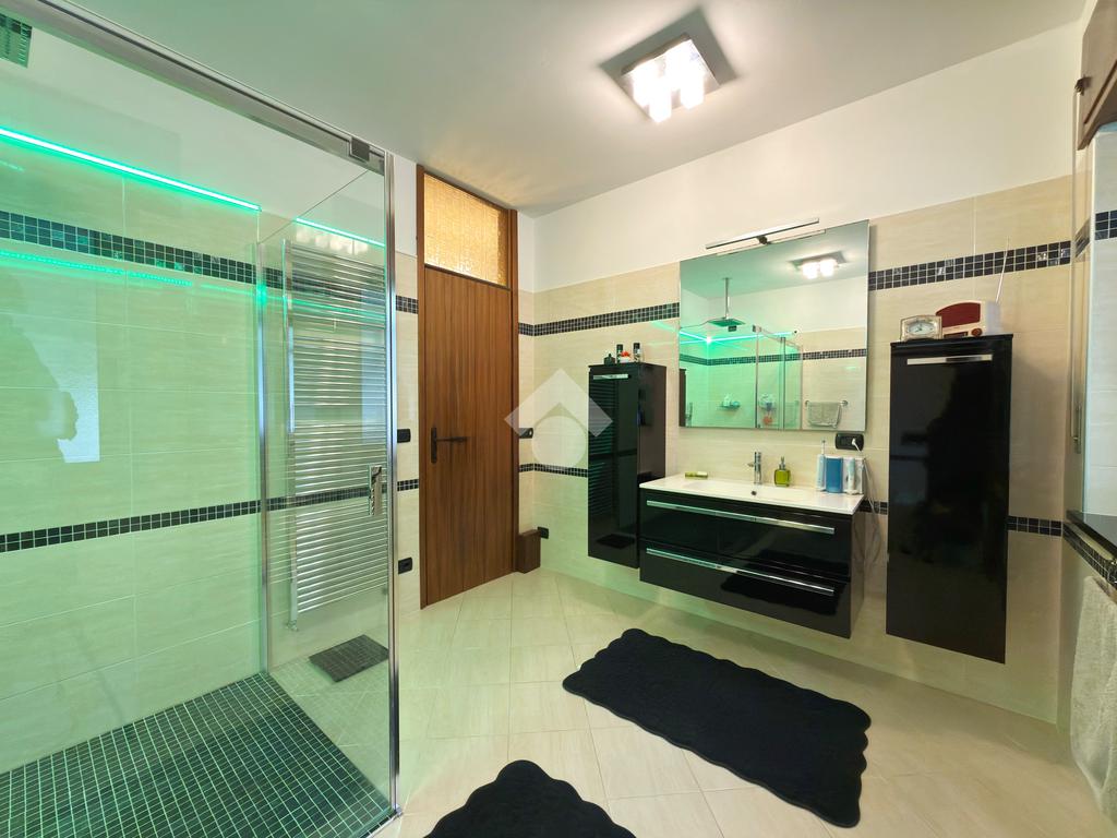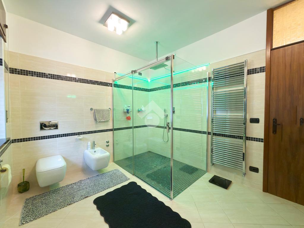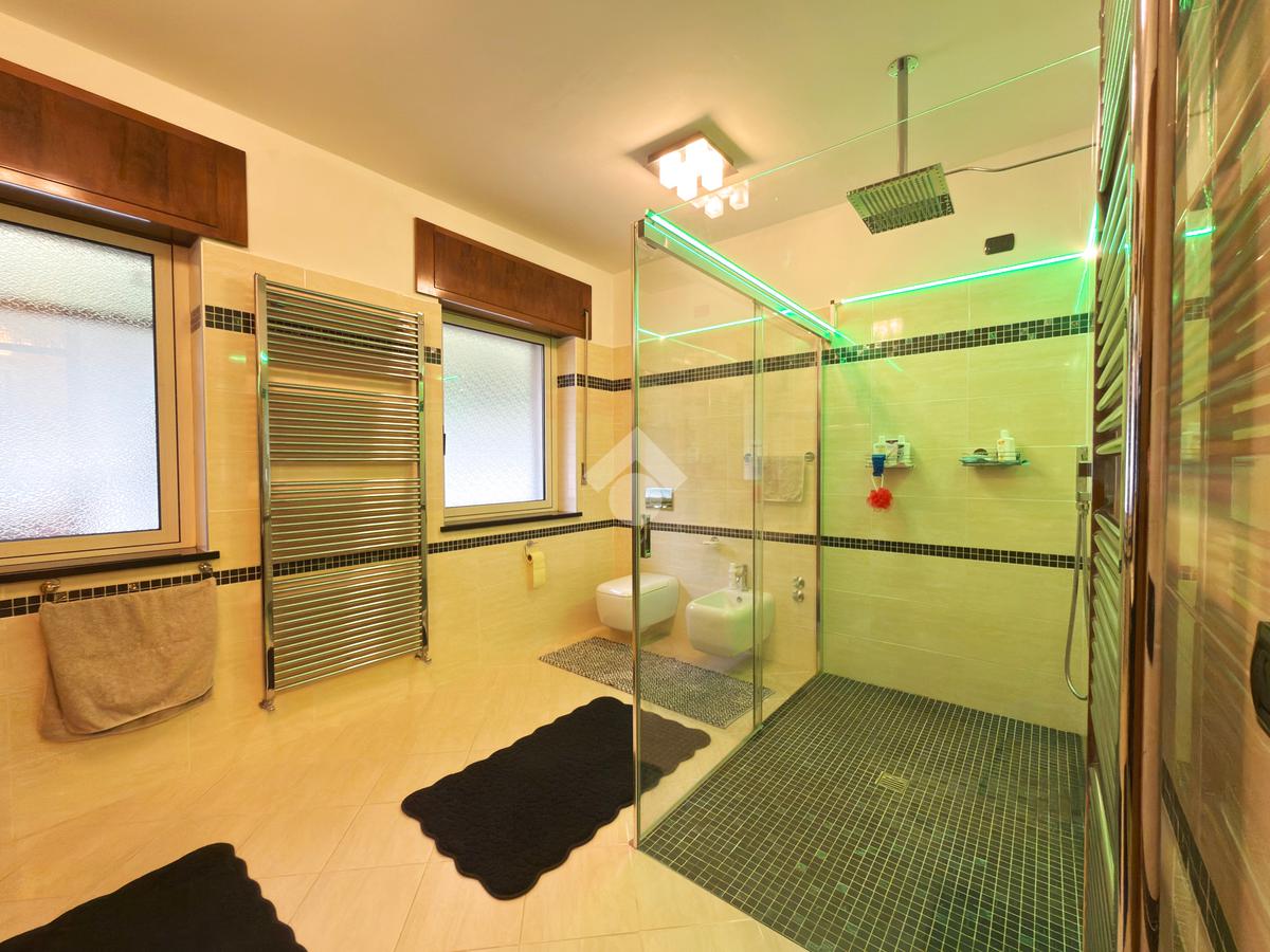 Al secondo piano troviamo un altro appartamento in cui è presente una cucina con openspace, una camera matrimoniale e due singole, due bagni, in uno di questi è presente la sauna e idromassaggio.