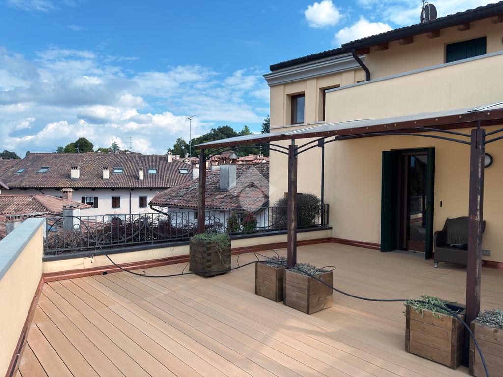 Nel cuore del centro storico di San Daniele del Friuli, proponiamo un elegante appartamento signorile situato al piano alto di un edificio storico del 1900, completamente ristrutturato nel 2009. Con una superficie di 155 mq, l'immobile offre spazi ampi e ben distribuiti, ideali per chi cerca comfort e raffinatezza. L'appartamento si compone di cinque locali, tra cui tre camere da letto, due bagni e un'ulteriore stanza versatile. Il punto di forza è l'ampio terrazzo panoramico, perfetto per godere di momenti di relax con una vista suggestiva sulla vallata del Tagliamento e sul Lago di Ragogna.