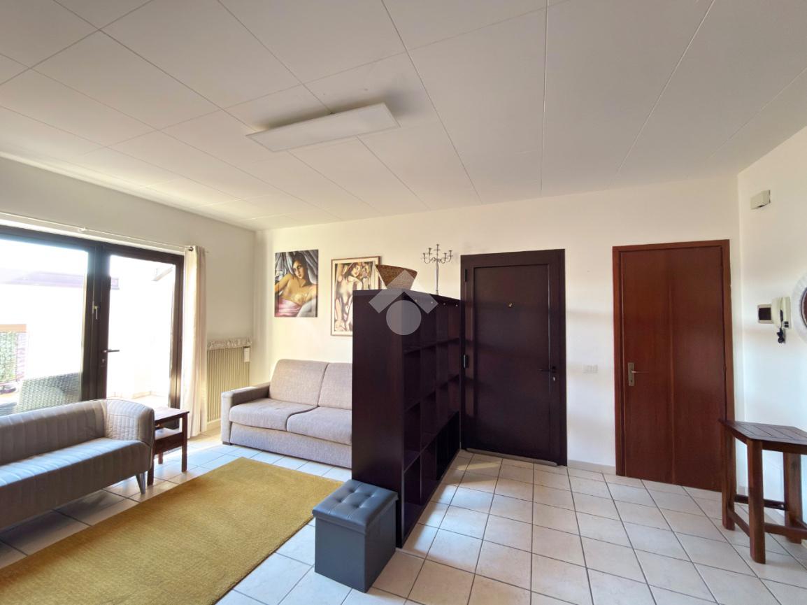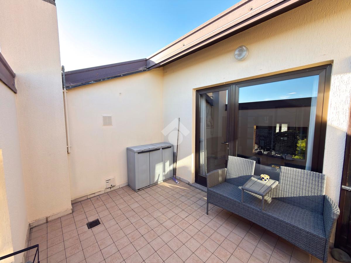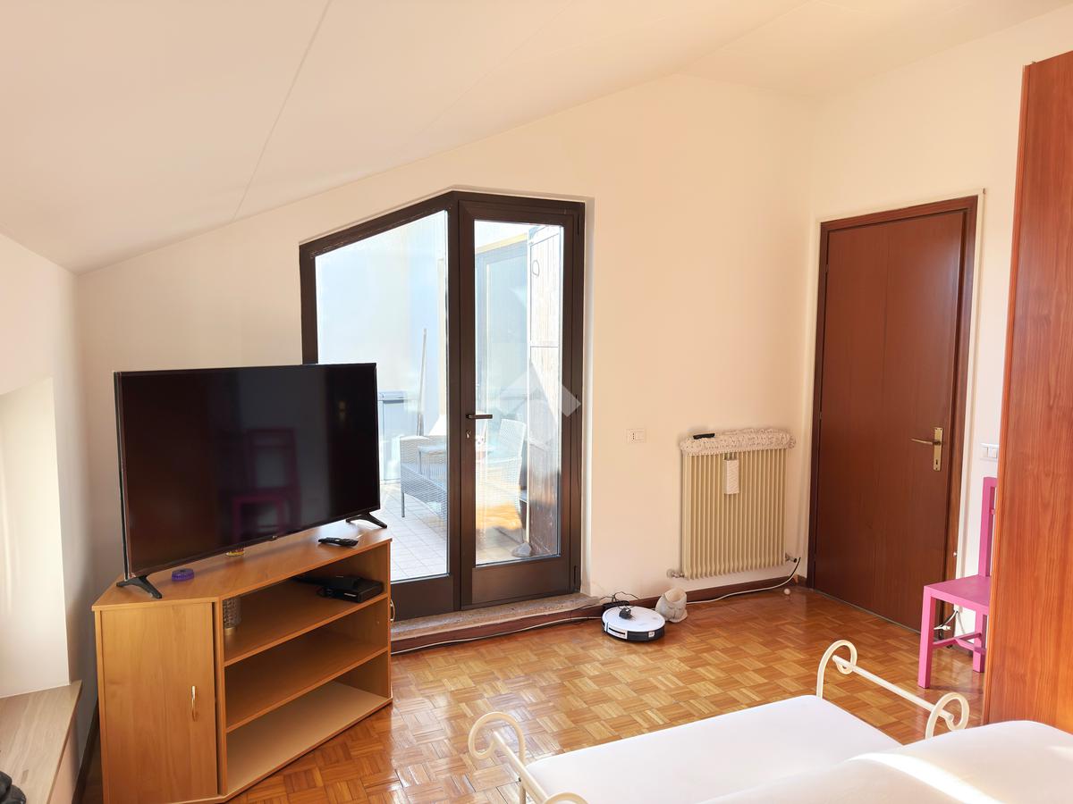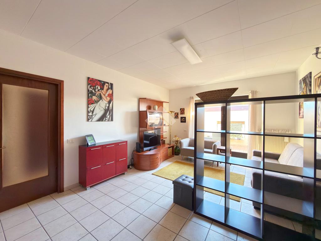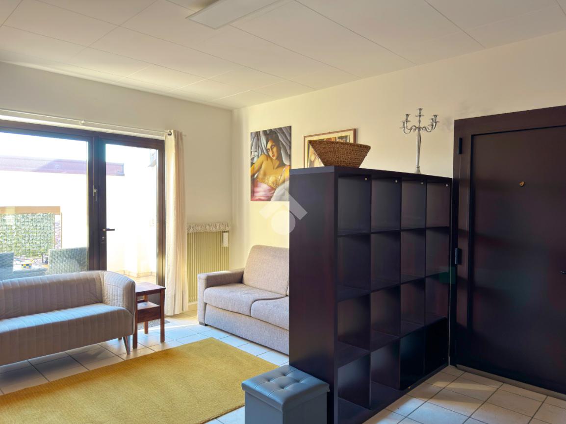 Subito in ingresso ci troviamo un luminoso soggiorno, dagli spazi generosi e ben distribuiti, dal quale abbiamo poi accesso tramite porta finestra al terrazzo dell'appartamento. Un comodo ripostiglio completa lo spazio della zona giorno.
